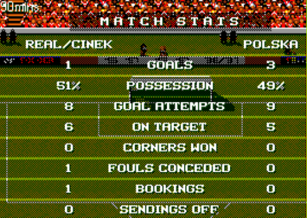 Pozniej dwie kolejne szybkie bramki i Real wychodzi na prowadzenie. Jeden z kontrataow SWOS Polska konczy sie celna glowka i mimo jeszcze paru sytuacji z obu stron wynik 3-3 utrzymuje sie do konca.