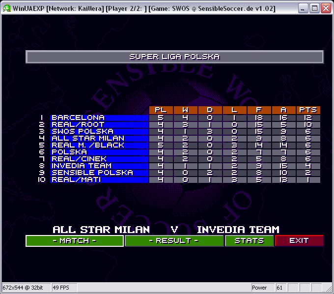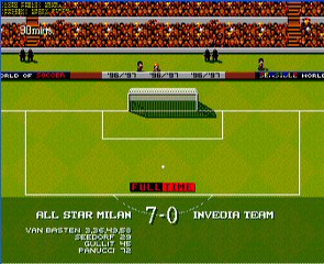 To był długo oczekiwany mecz, niektórzy znawcy futbolu uważali nawet że nigdy się on nie odbędzie a jednak w świetle jupiterów i pełnych trybunach na San Siro odbył się. Drużyna Invedii pewna siebie w ataku zapomniała chyba o obronie i już po pierwszej akcji Van Basten zdobył pierwszą bramkę nie musieliśmy czekać długo a było już 2-0 3-0 itd... Invedia starała się odrobić straty ale defensywa Milanu tego dnia nie popełniała błędów. Niestety mecz zakończył się wynikiem aż 7-0 dla Milanu. Gracze MIlanu maja tylko nadzieje że działacze Invedii nie zwolnią swego dotychczasowego trenera po tak srogiej porażce. Mecz ogólnie był czysty tylko po jednym faulu po obu stronach, jeden z tych fauli sędzia udokumentował kartką, kontuzji nie było żadnych gdyż kontuzjowani gracze nie grali odczuwając bóle po poprzednich meczach. Pozdrowienia dla reszty graczy - następny mecz CINEK - ROOT