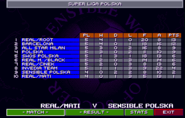 Mecz dwóch outsiderów zapowiadał się dość ciekawie, bowiem drużynę Realu od niedawna prowadzi Ruichi i wszyscy ciekawi byli jego debiutu. Real tradycyjnie wystąpił w białych koszulkach, Sensible Polska w czerwonych. Od pierwszych minut dało się zauważyć nerwowość w grze Realu, bo już w pierwszej minucie po brutalnym faulu żÃ³łtą kartkę dostał Sanchis. w 15 minucie po dalekim dośrodkowaniu z połowy boiska, Foka nie dał szans bramkarzowi otwierając wynik spotkania. Sześć minut później było już 2-0, kiedy bananowym strzałem popisał się Noel. W 32 minucie odżyły nadzieje Realu, bo wślizgiem strzelil Mijatovic, ale jak się później okazało to wszystko na co było stać dziś Real. Jeszcze przed przerwą na 3-1 podwyższył Spankin. W 70 minucie Dior, a w 77 Spankin popisali się niemal identycznymi strzałami lobując bramkarza Realu. Korpkę nad i postawił Foka, który okiwał bezradnego bramkarza Realu ustalając końcowy wynik na 6-1. Można odnieść wrażenie, że Ruichi skoncentrował się bardziej na zapamiętywaniu faktów z gry, niż na samej grze, ale nie ulega wątpliwości, że Spankin wygrał zasłużenie.