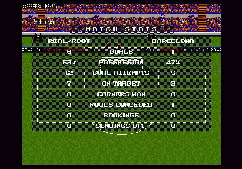 Mecz toczył się przy obfitych opadach śniegu, deszczu, gradu i czegoś tam jeszcze, czyli był sponsorowany przez literki L, A i G. Od początku ton wydarzeniom na boisku nadawał mistrz Polski, który szybciutko zdobył 3 bramki. Ja jeszcze w pierwszej połowie wcisnąłem strucla na 3-1 i zakończyłem dobrą grę. Potem mądra obrona Roota, odważne i przemyślane kontry, plus troszkę lagowy karny zrobiły swoje. Prawdopodobnie przy słonecznej pogodzie wynik byłby jeszcze ciekawszy
