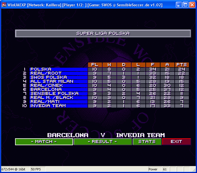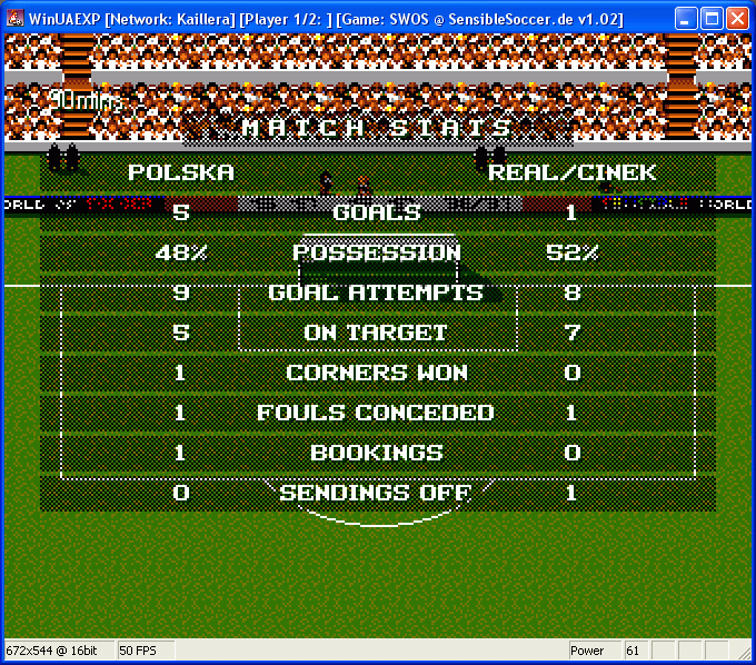Był to ostatni mecz, pierwszej serii meczów. Pączek potrzebował wygranej, aby wyciągnąć się z dna tabeli. Lobo potrzebował zwycięstwa, żeby nadal liczyć się w walce o tytuł. Mecz rozpoczął się od ataków Invedia Team, którzy raz za razem szturmowali bramkę SWOS Polski, która grała jedynie z kontry. Około 30 minuty drużyna prowadzona przez Lobo zaczęła porządnie wchodzić w mecz, co skończyło się bramką strzeloną w 38 minucie przez Lobo ;P. Jednak odpowiedź Invedii Team była błyskawiczna i w 41 minucie za sprawą Pączka ;P był już remis. W drugiej połowie Invedia tak jakby opadła troszkę z sił i wyczekiwała na drużynę SWOS Polska na własnej połowie, co nie skończyło się zbyt ciekawie