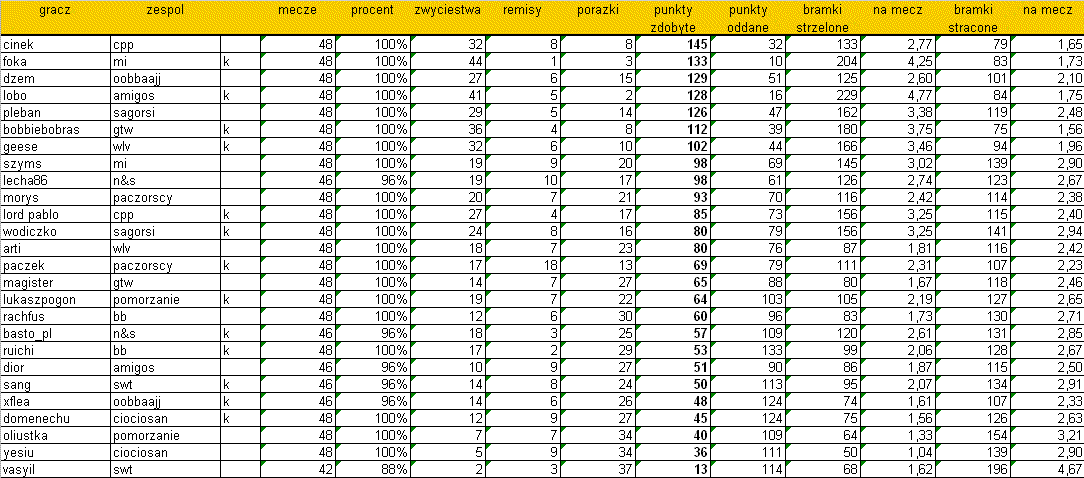 Obie drużyny dostają więc po 4 punkciki, a następna dostanie 2.
