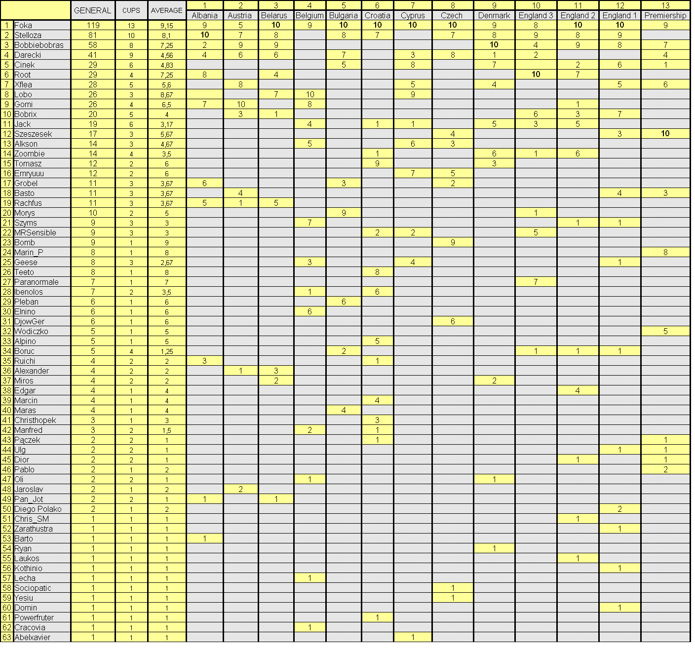 Add Avarage = Points in General / Cups
