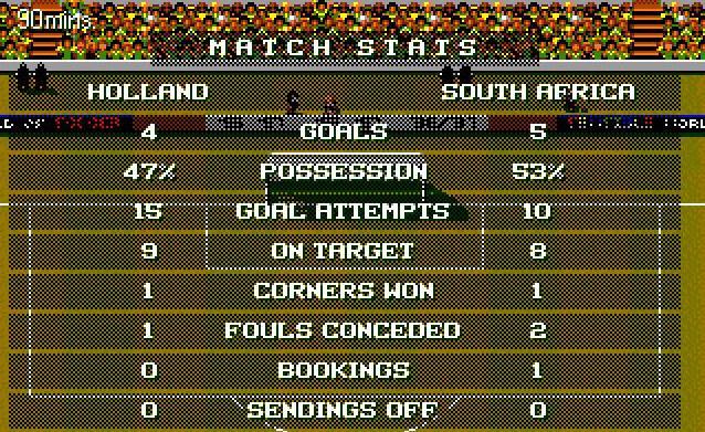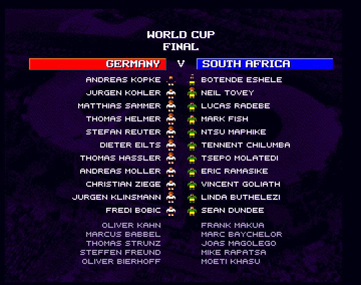 The match was a hard fought battle both sides had their chances dundee missed a sitter for south africa and kilnsmann struck wide twice with thunderous shots! in the 33rd minute klinsmann finally hit the mark 6 minutes later the dundee tucked the ball in the corner just out of kopkes reach.