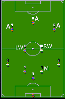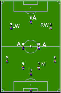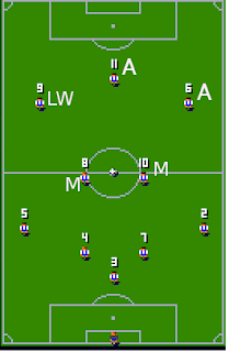 The optimal positions to have in this situation is to have 3 central defenders and 2 backs. The midfield is RW and LW. Attack is also a LW and RW plus one attacker. There is no normal team in the game that have this of course so 3 attackers in front works also. The only original team in SWOS 96-97 to play 5-2-3 is Roda in Holland. You can check out the team in the old version.