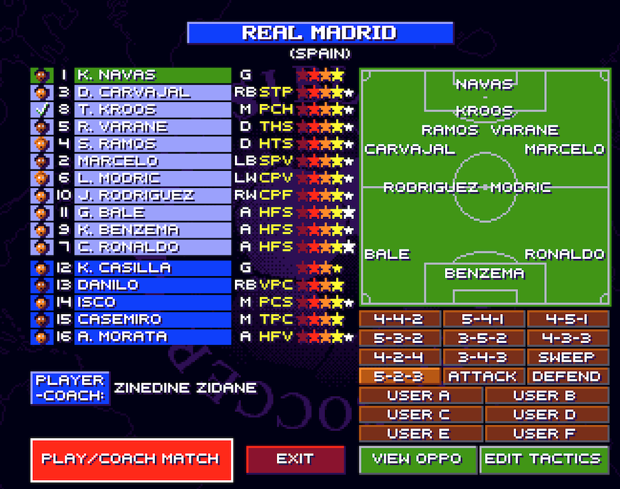 I will check everything you said, Currently I m using RM16 , with the wingers in the midfield, yes, they seem better there and 3 A in front, with kroos in the center of the defense. Then, the same as you say I think.
