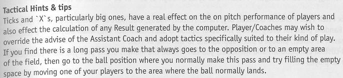 Ticks and crosses are only important for the development of player values in careers, especially in simulating matches.