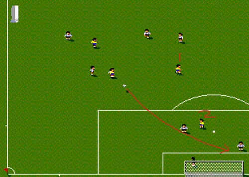 Something I've noticed with the good SWOS players is that they always seem to be in control of the right player at the right time. It's something I struggle with, especially when crossing the ball. Let me show you an example in this picture.