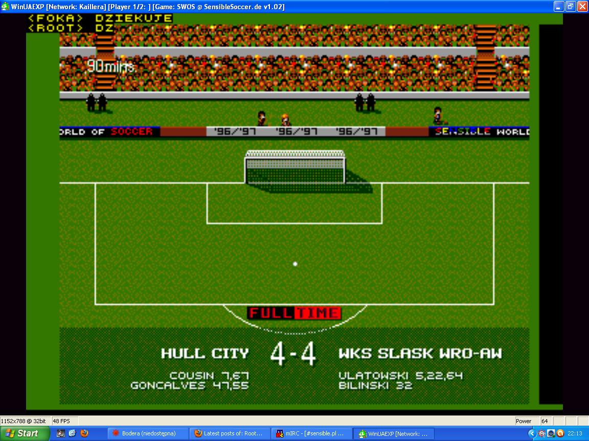 Kolejny mecz Polskiej Super Ligi za nami, tym razem Argentyńczycy zdołali pokonać ściągniętych z wakacji zawodników Invedii Sensible Ligi 4:3. Mecz jednak rozpoczął się bardzo dobrze dla lubinian, bo już w 2 minucie strzałem przy słupku bramkarza Argentyny pokonał Romaneq. Potem mecz się wyrównał, jednak jak się potem okazało Leman jeszcze nie zdążył wytrzeźwieć, gdyż swoją pierwszą udaną interwencje zaliczył dopiero... w 58 minucie. Dlatego też w 22. minucie bramkę wyrównującą zdobył Messi, w 39 Aguero wszedł bez ruchy Lemana do bramki i już było 2:1. Potem nastąpił moment kluczowy dla rywalizacji, w 42 minucie czerwoną kartkę dostał Zienior i przez prawie 50 minut Invedia musiala radzić sobie bez swojego reżysera gry. Zawodnicy ISL jeszcze nie zdążyli się otrząsnąć po stracie gracza a już dostali kolejną bramkę autorstwa Aguero. Pierwsza połowa zakończyła się wynikiem 3:1 dla Argentyny. Już na samym początku II połowy Argentyńczycy strzelili kolejną bramkę i gdy wydawało się, że jest już po meczu lubinianie podnieśli rękawice i najpierw w 51 minucie bramkę na 2:4 zdobył Romaneq a w 78 Pączek i było już tylko 3:4. Na więcej graczom ISL jednak zabrakło czasu i ostatecznie Argentyna pokonała Invedia Sensible Ligę 4:3.