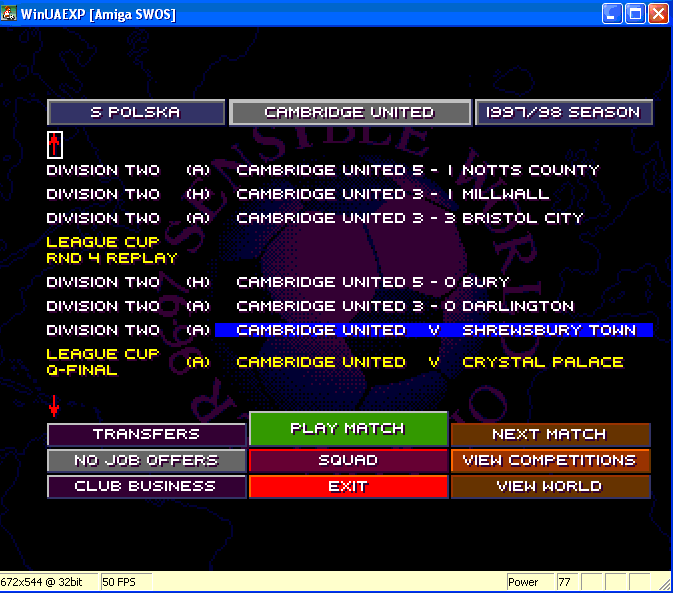Pod wodza Dareckiego Cambridge grało dobrze w lidze ale niestety w rewanzy z Liverpoolem doznał sromotnej porazki 0-5!!! Liga przebiegała wmiare spokojnie bez wiekszych trudnosci.W drugim Pucharze po przejsciu Brighton natknołem sie na Everton Mimo obaw i ciezkiego meczu gdzie nasz GK czynił cuda w bramce udało sie wygrac 4-2!! Niestety w next round trafiamy na Chelsea wiec znowu bedzie potrzeba duzooo szczescia i dobrego dnia Gk.