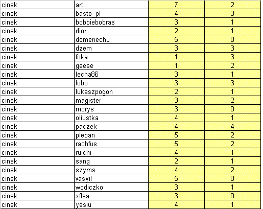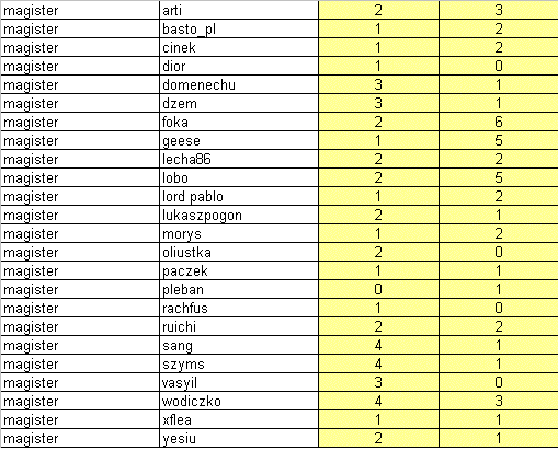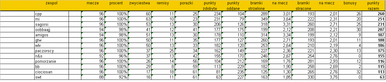 Obie drużyny dostają więc po 4 punkciki, a następna dostanie 2.