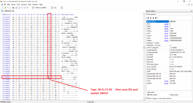 Save your career in SWOS! The file is in "swos" directory of SWOS 2020 folder.