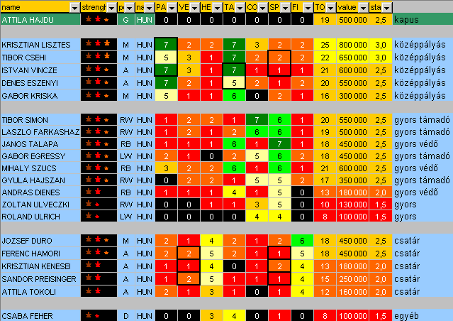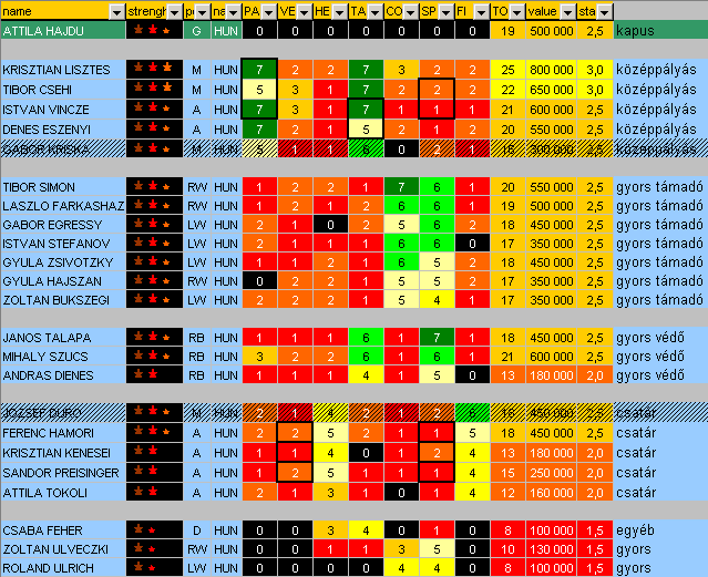 Bükszegit én azért nem vettem meg, mert a 4-es speed nem akkor nagy tempó, de ettől még használható. De csatárként jobb Simon, Farkasházy és Hajszán is nála, mert azonos V és F mellett (sőt Hajszán F-je még nagyobb is), gyorsabbak és jobb a C-jük.