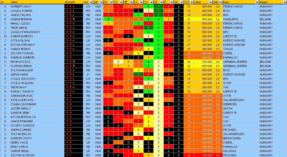 Mellékelem a legfürgébb magyar játékosok listáját. Ez alapján nem szabadna lemaradni Egressy-ről, és jó lehet még Zsivótczky és Hajszán is, sőt meglepő módon a magyar (?) Agic is.
