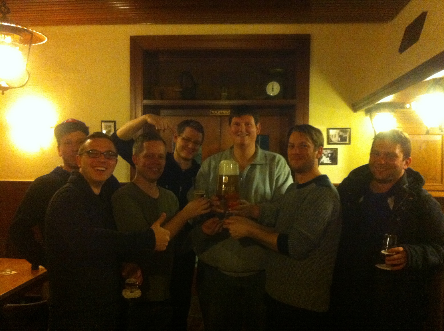 Rahmenprogramm: Freitags können wir wenigstens alle beruhigt in die Kneipe gehen. Paider hat die Kegelbahn in Sistig reserviert.