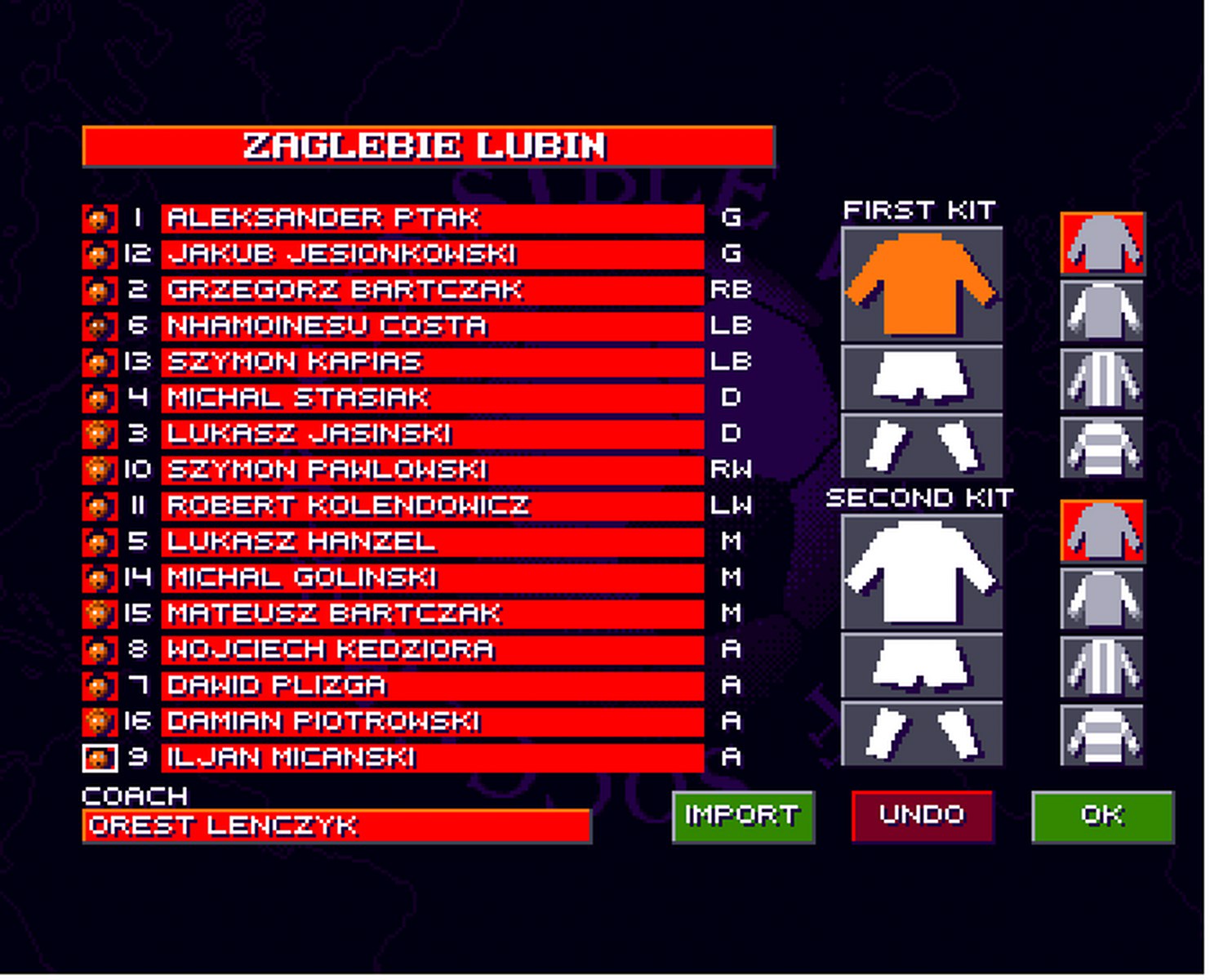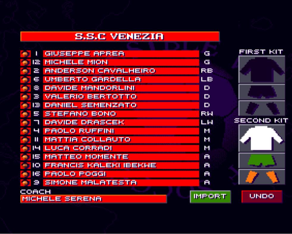 Uzywac bedziemy druzyn wyedytowanych z orginalnych, znajdujacych sie w SWOS 96/97. Parametry graczy pozostaja niezmienione!