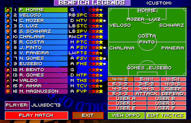 Please add my team with a custom squad setting as seen on screenshot based on Spain 96. And please correct "Mercelo" as "Marcelo".