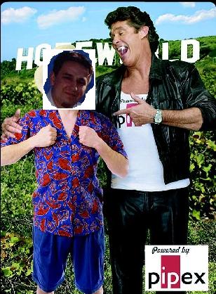 please turn this hoff mania off! in England we have to put up with his crappy adverts not to mention william shatner. why do big ex celebs have to move to England? why oh why?