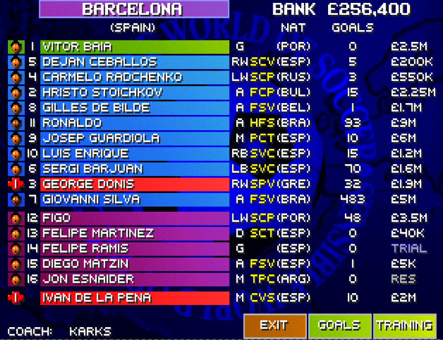 Pic2: Giovanni with 483 (!!) goals... hmmm, doesn t SWOS recount from 256 back to 0?