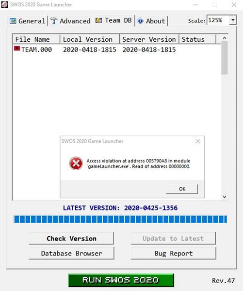 please update to 1.2.1c via online updater and try it againWin 10 Pro 1909. Access violation error with v1.21b launcher when i click on TeamDB tab. With v1.1 & v1.2 i had no errors. See attachement.