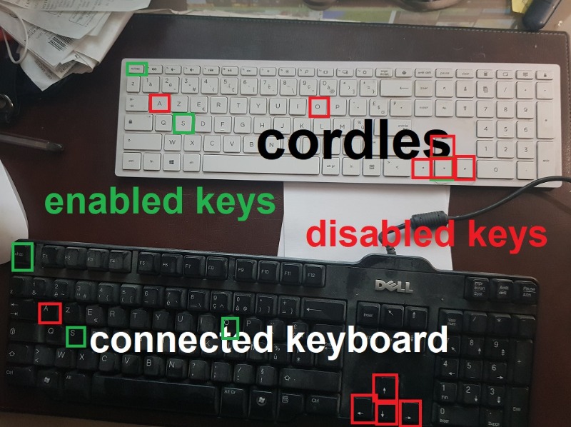 I m very sorry to be the first to mention this issue but it is easy to recreate : Eachtime the game is interrupted by referee, movements keys (up, left, right, left arrows and kick key) are disabled . So you can see that i 've tried with those two keybords (see pictures on attachments).
