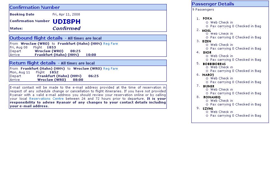 W każdym razie my, korzystamy z doświadczenia chłopaków z przed roku i lecimy samolotem. Aktualnie podróż w obie strony kosztuje z wszystkimi opłatami 200 zł. Bobbie dowie się jeszcze czy nie ma jakiejś zniżki dla grup zorganizowanych. Samolot nie leci bezpośrednio do Primasens. Wylatuje z Katowic i lot kończy w Frankfurt Hahn. Z Hahn trzeba się dostać jakoś do Prima. Nie jest to blisko, a komunikacja Niemiecka jest bardzo drogo. Więc najlepszą opcją będzie wynajęcie auta. W grę wchodzą dwa auta 5 osobowe lub van. To w zależności od tego ilu nas pojedzie. Powrót jest w poniedziałek rano.